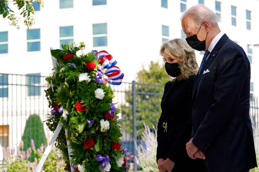 Biden stood shoulder to shoulder with former Presidents Barack Obama and Bill Clinton in New York City, where two planes crashed into the World Trade Center that sunny September morning 20 years ago. Separately, former President George W.