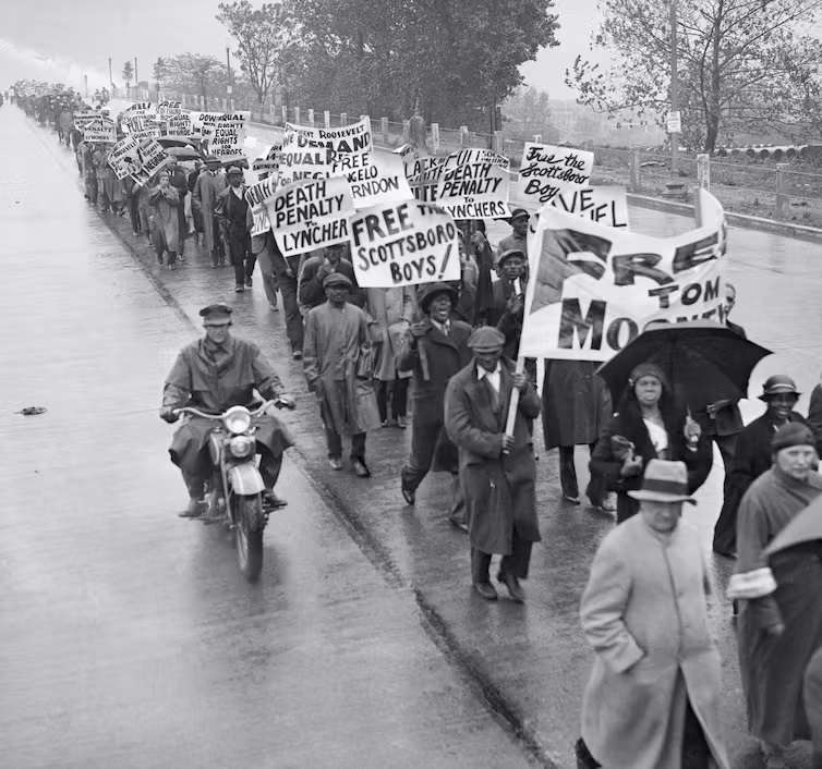 Demonstrators march on Jan. 1, 1934, in Washington against the unjust trials of nine Black men falsely accused of raping two white women. Bettmann/Getty Images by Ronald E. Hall, Michigan State University If Florida Gov. Ron DeSantis had his way, the word “woke” would be banished from public use and memory. As he promised in … Continued