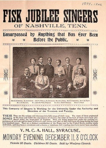 The Fisk Jubilee Singers, an cappella group of nine students from Fisk University was organized in 1871 to raise money ($20,000, to be exact) for their financially troubled institution. They succeeded magnificently. In the process, they were instrumental in preserving traditional African American spirituals and bringing them to a vastly wider audience, both in the U.S. and Europe.