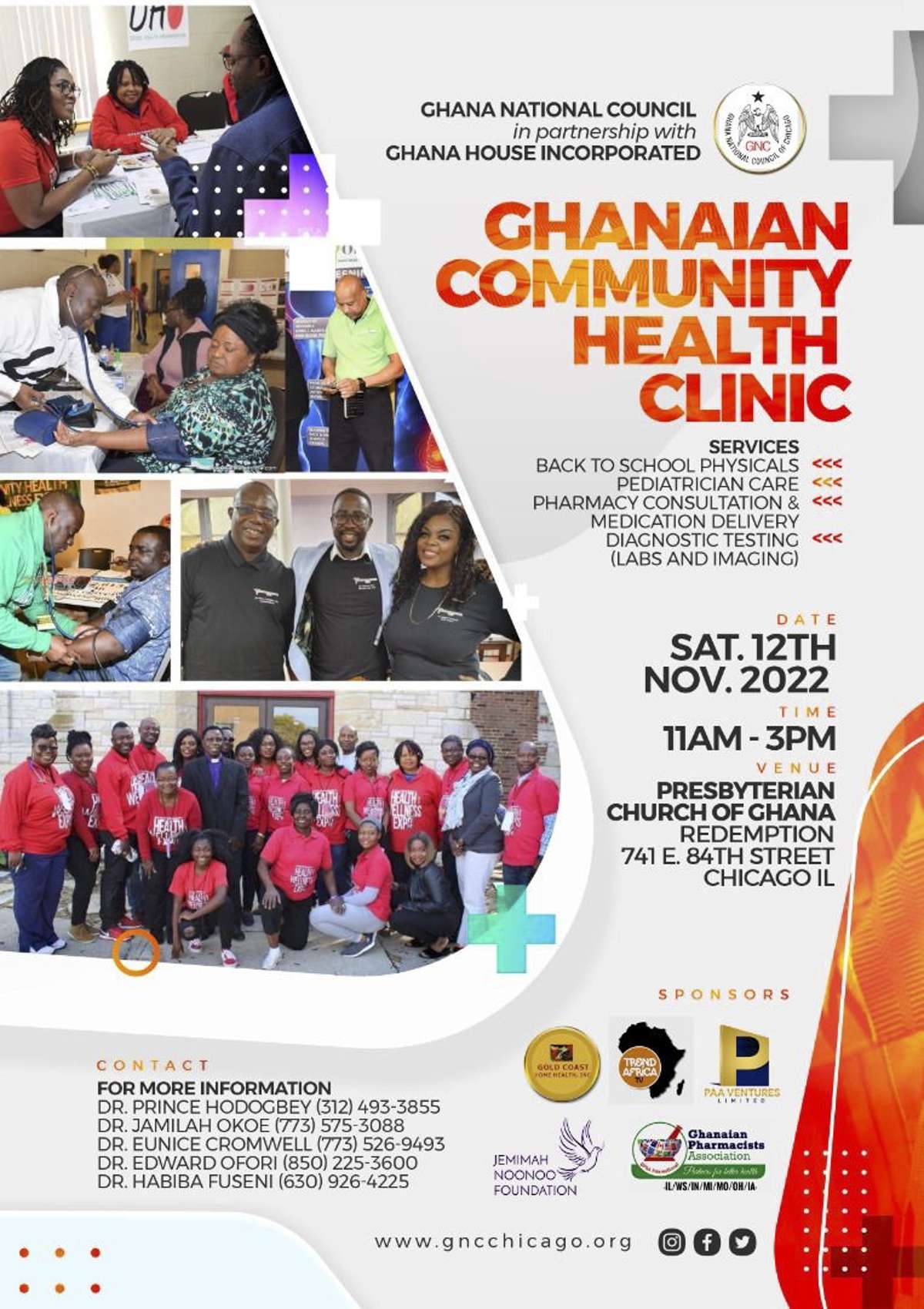 Ghanaian medical professionals offer free monthly community health clinics on the South Side - Sat., Nov. 12th was first posted on November 11, 2022 at 3:53 pm.©2022 "The Chicago Crusader". Use of this feed is for personal non-commercial use only. If you are not reading this article in your feed reader, then the site is guilty of copyright infringement. Please contact me at office@avantgardia.com