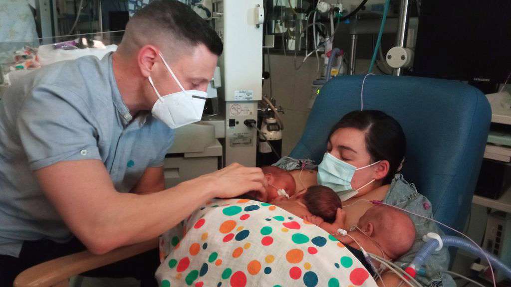 Triplets who were born prematurely after 28 weeks of pregnancy lay against their mom’s chest, receiving the benefits of “kangaroo care” — skin-to-skin contact — which is said to simulate the environment experienced in the [...]