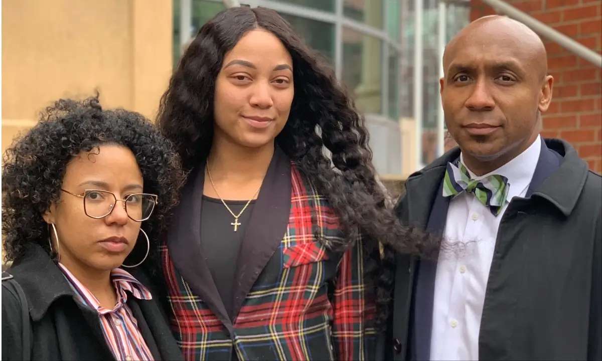 Attorney Tatiana Jasira Lima, left, Qri Montague, center, and Mawuli Davis, right
