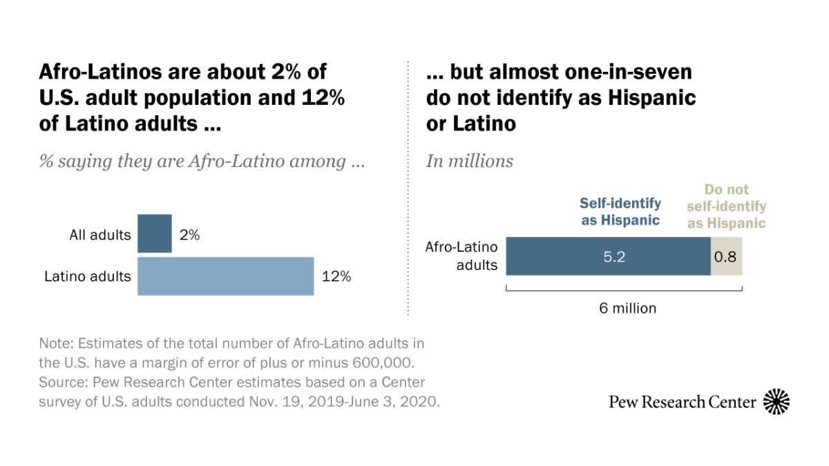 In 2020, Afro-Latino Americans made up about 2% of the U.S. adult population and 12% of the adult Latino population.