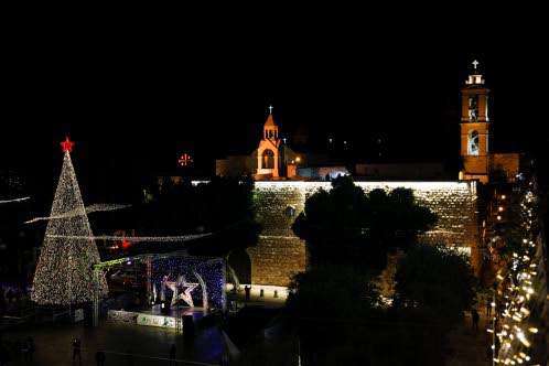 BETHLEHEM (AP) - Only a few dozen people attended the lighting of the Christmas tree in the biblical city of Bethlehem on Saturday night, as coronavirus restrictions scaled back the annual event that is normally attended by thousands.
