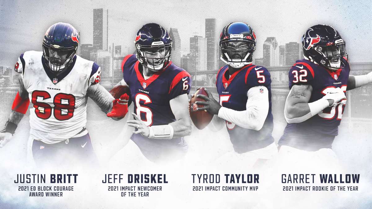 The post Texans OL Justin Britt, TE Jeff Driskel, QB Tyrod Taylor and LB Garret Wallow Recognized With 2021 Team Awards appeared first on Houston Forward Times.