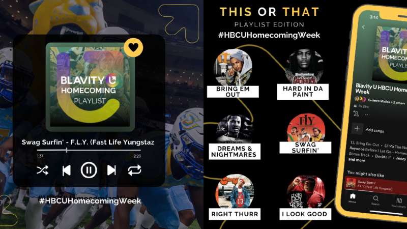 If you attended a Historically Black College or University ( HBCU ), music undoubtedly served as a cornerstone to your campus life experiences. There is probably a list of songs you can run off the top of your head that instantly takes you back to your student center after class, warm days on the quad, or dance breaks between plays on game days. Homecoming season is in full effect this fall, and students and alumni look forward to catching all the “cookout feels” as they hug each other like no time has passed and listen to songs guaranteed to be heard at any event. In honor of Blavity U Homecoming Week, here’s a Spotify playlist curated specifically for you. The anthems featured reflect the authenticity of HBCU campus life, and its categories range from the adrenaline-inducing beats featured in step-and-stroll songs to songs that emphasize the standard of Black excellence. Salute to the past, present, and future pioneers! Blavity U Homecoming Week Playlist