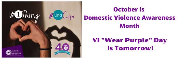 Join the Women’s Coalition of St. Croix in showing support for victims and survivors by wearing purple, the theme color for domestic violence, starting tomorrow.